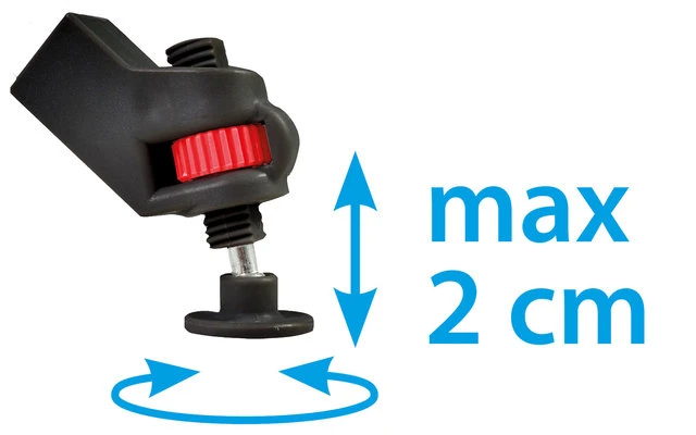 - Mikrometrischer Niveauausgleich mit Wasserwaage • Obere Ablageplatte aus MDF • Strapazierfähiger Polyesterbezug • Belüftungsgaze in der Rückwand • Inklusive Tragetasche